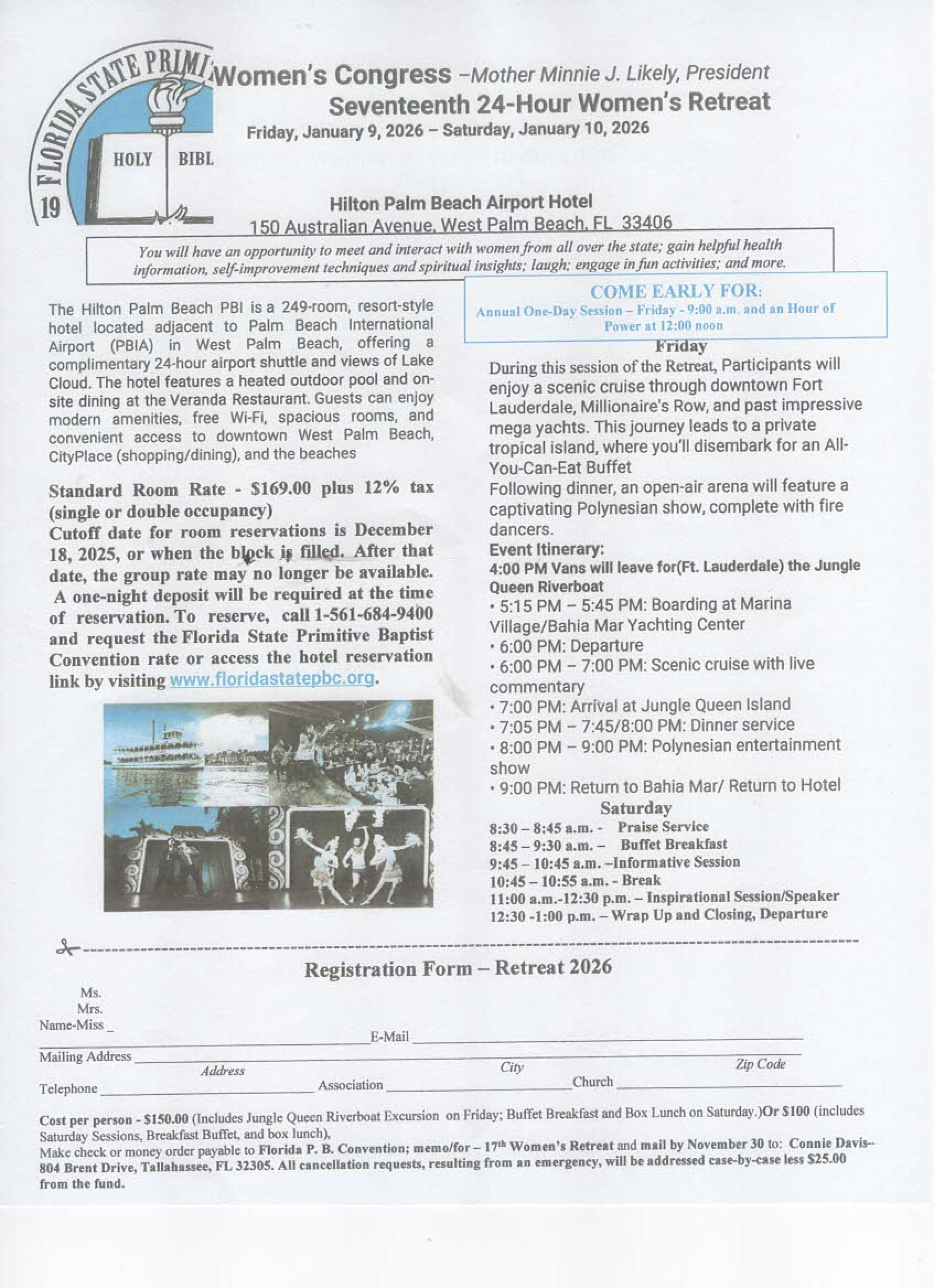 The 17th 24-Hour Women's Retreat will be taking place in West Palm Beach this year. For more information and the registration form, download it through the link below.